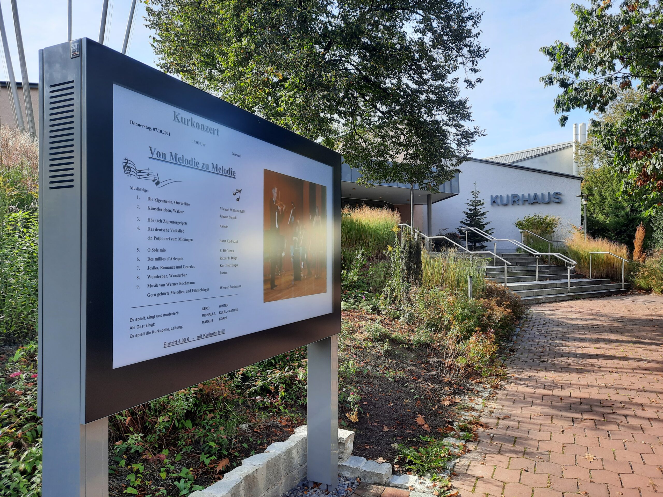 Veranstaltungs- und Informationsportal vor dem Kurhaus Bad Abbach mit Hinweisen aus allen ILE-Kommunen |