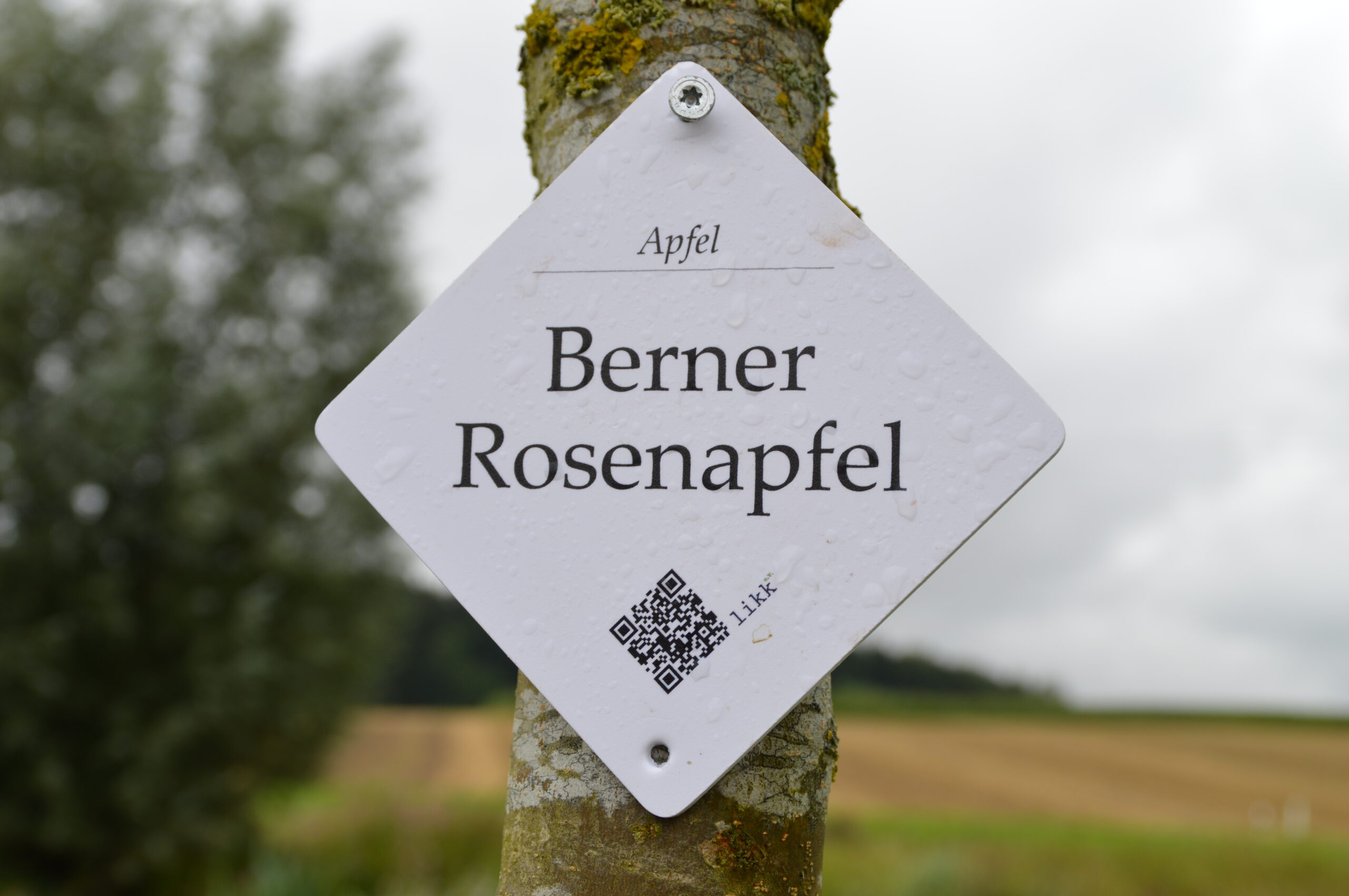 Ansprechende und informative Sortenschilder an 80 ausgewählten Apfel- und Birnbäumen |