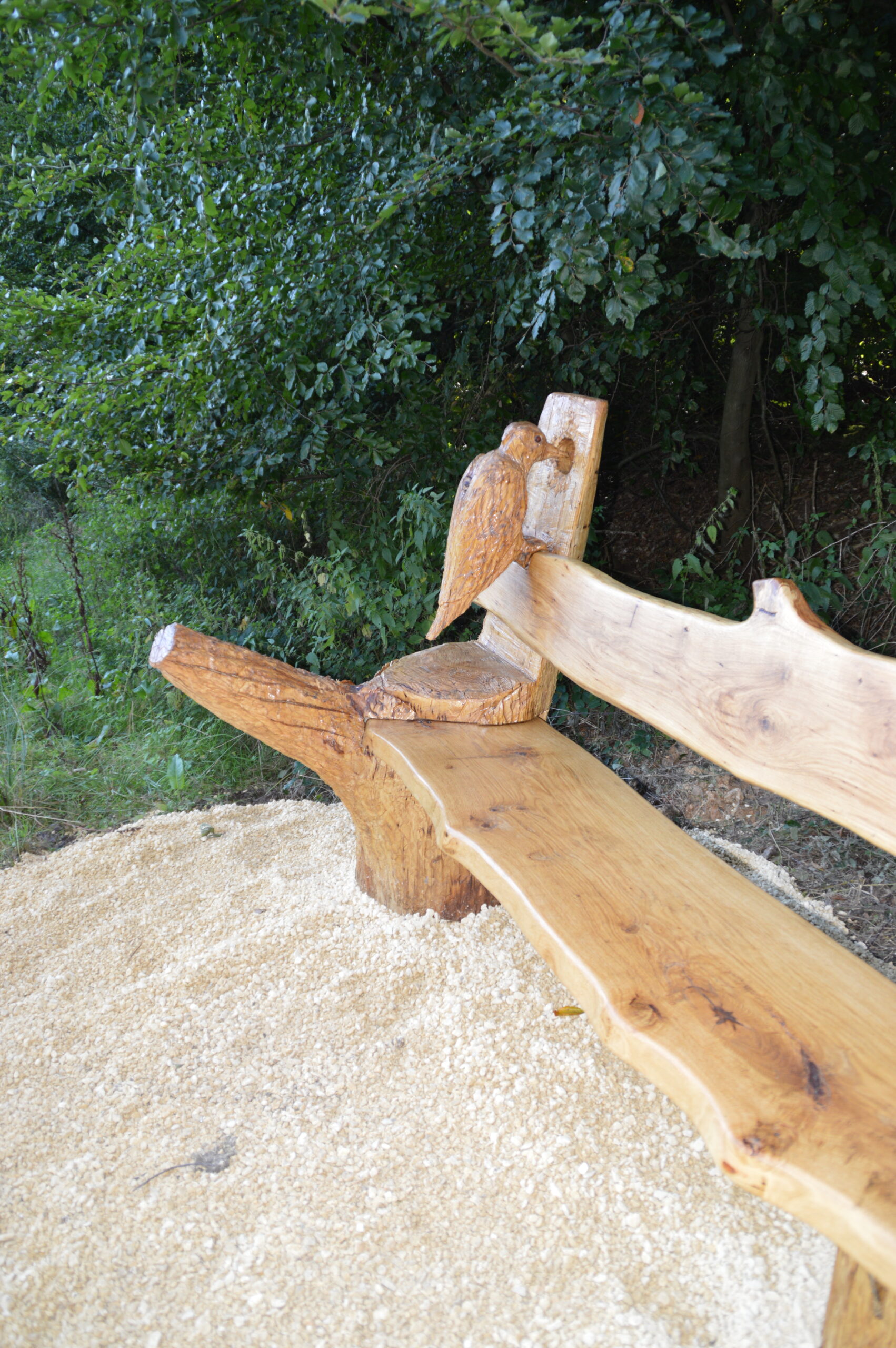 Individuelle Bänke und Tische zur Rast an Wegen mit heimischen Hölzern |